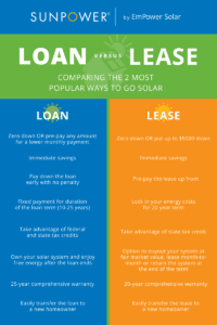Solar leasing or financing are the two most popular ways to go solar. For most consumers, a loan makes greater sense when they plan to be in their home for a long time, however, a lease is a great benefit to homeowners with little-to-no tax appetite, or who simply don’t want to commit to owning the system. It’s important to note that there are a number of ways to finance your solar system, including loan products we offer, home equity lines of credit, personal loans, etc. We will explain the nuanced differences in future posts, like this one about SunPower solar leases vs solar PPAs.